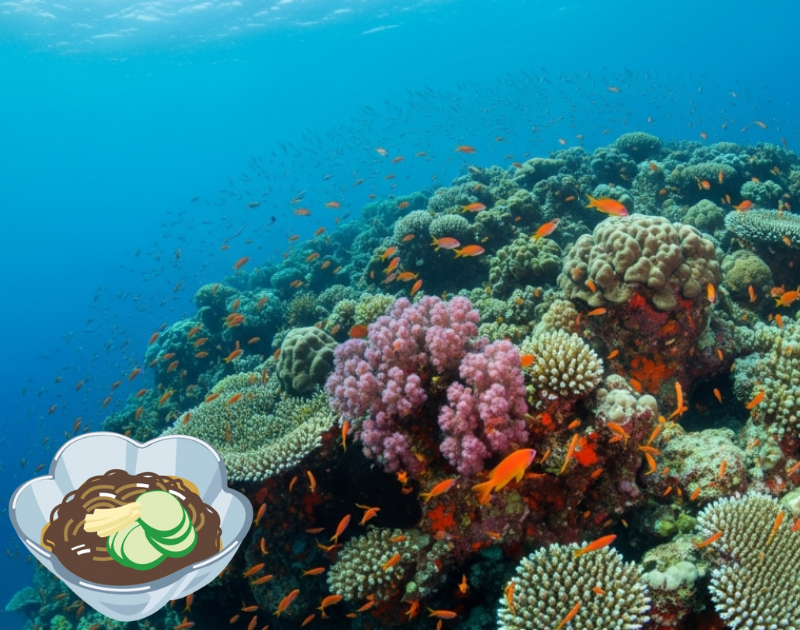 恩納もずくが育つ沖縄の海は、サンゴ礁に支えられた豊かな生態系の一部です。サンゴは美しいだけでなく、海の水質を保ち、多くの海洋生物の住みかを提供する大切な存在です。