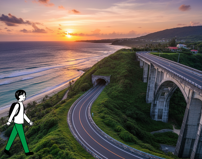 観光地を車で駆け抜けるのもいいですが、ゆっくり歩くと見える景色はまったく違います。潮の香り・集落の静けさ・道端のハイビスカス……、そんな「生きた沖縄」を感じるには、歩くのがいちばんです。