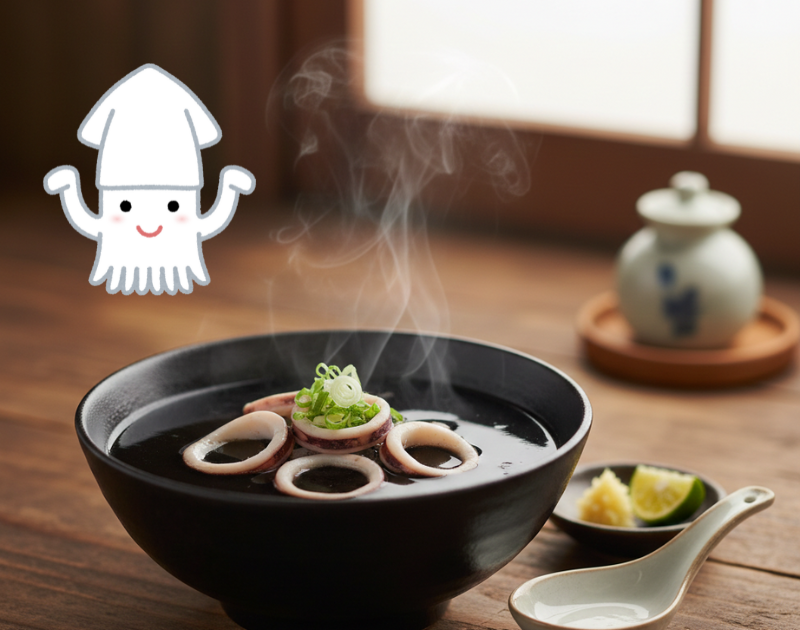 沖縄の食堂や家庭で古くから愛され続けているイカスミ汁は、見た目のインパクトと深い味わいが特徴の伝統的なスープ料理です。