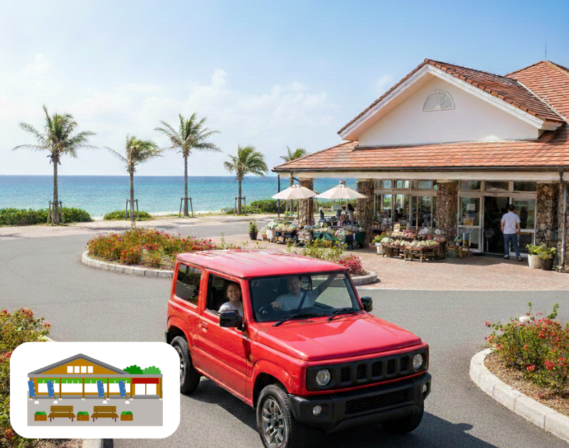 テラス席からは名護湾のエメラルドグリーンの海を一望でき、休憩するだけで沖縄らしさを存分に味わうことができます。やんばるの自然を車窓から楽しみながら、地元の特産品を手に取る時間は、ドライブの質を一段と高めてくれるはずです。