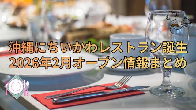 地元住民・地域コミュニティ 沖縄にちいかわレストラン誕生 2026年2月オープン情報まとめ 大人気キャラクター「ちいかわ」のコラボカフェである「ちいかわレストラン」が、ついに沖縄へ初上陸することが決定しました。本記事では最新の開催概要や過去の人気事例などを紹介します。 2026.01.23 地元住民・地域コミュニティ観光客・沖縄ファン