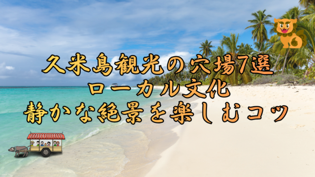 地元住民・地域コミュニティ 久米島観光の穴場7選|ローカル文化と静かな絶景を楽しむコツ 効率よく島を回り、夕方は海に沈む夕陽を眺め、最後は大浴場で旅の疲れを癒やす、そんな心身ともにリラックスできる1日を紹介します。 2026.02.26 地元住民・地域コミュニティ観光客・沖縄ファン